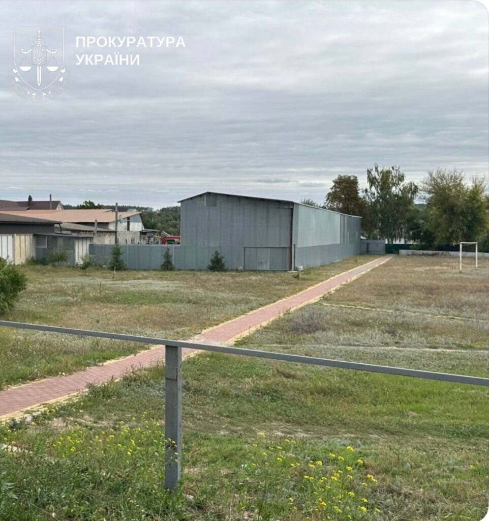💬 За даними слідства, у селі Томилівка частину шкільного стадіону незаконно «приєднали» до приватної земельної ділянки через зміни в системі кадастру. Згодом на цій території звели ангар для сільгосптехніки.